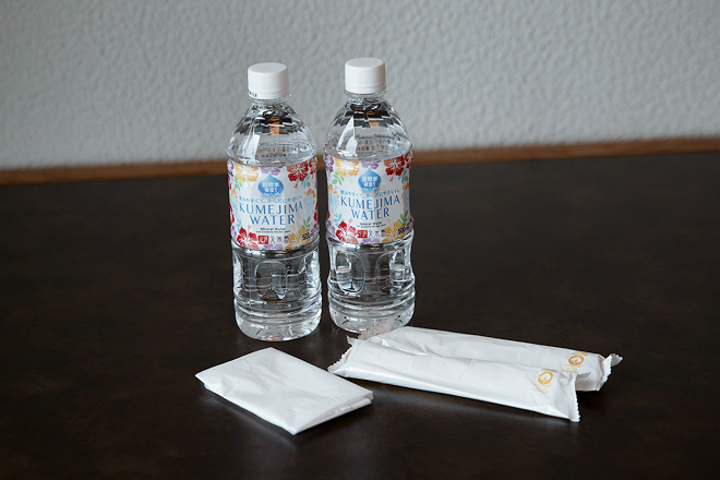 貸し出し特典として、ペットボトルウォーターとおしぼりをプレゼントしています。